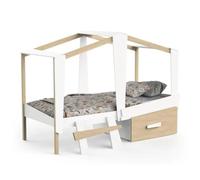 DEMEYERE Lit cabane enfant avec grand tiroir - 90 x 200 cm - Décor Blanc mat et chêne - Sommier inlcus - Informations sur les prix